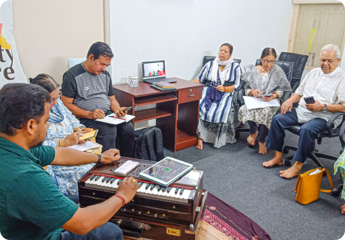 Our music class is designed specifically for seniors. These classes aim to promote mental and physical well-being through musical activities. Our sessions include
